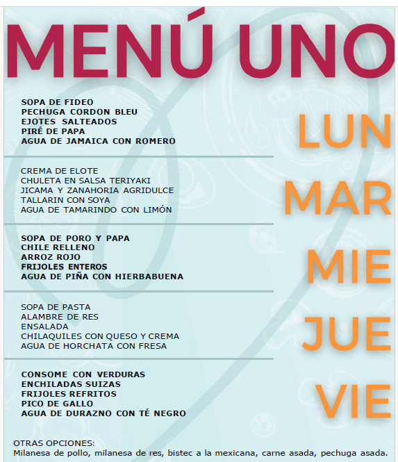 Menús personalizados para satisfacer los requerimientos nutricionales.